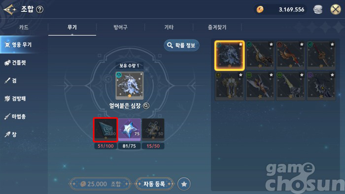 사용처가 한 군데라 생각보다 많이 남게되는 영웅 무기조각 = 게임조선 촬영