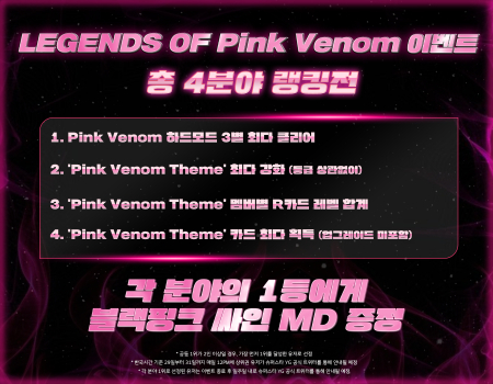 아울러 블랙핑크 컴백을 기념하여 진행되는 ‘LEGEND OF Pink Venom 스페셜 미션’을 모두 완수한 유저에게는 블랙핑크의 사인이 담긴 특별한 배경아이템이 지급되어 많은 유저들의 관심이 기대된다.