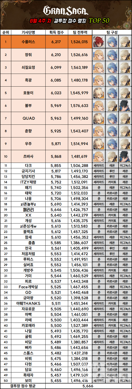 ■ 수플러스, 세리아드 없는 파티로 점수 랭킹 1위