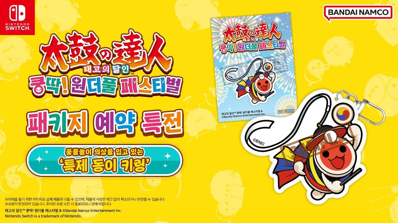 닌텐도 스위치용 '태고의 달인 쿵딱! 원더풀 페스티벌' 패키지 버전 예약 판매 9월 1일 시작