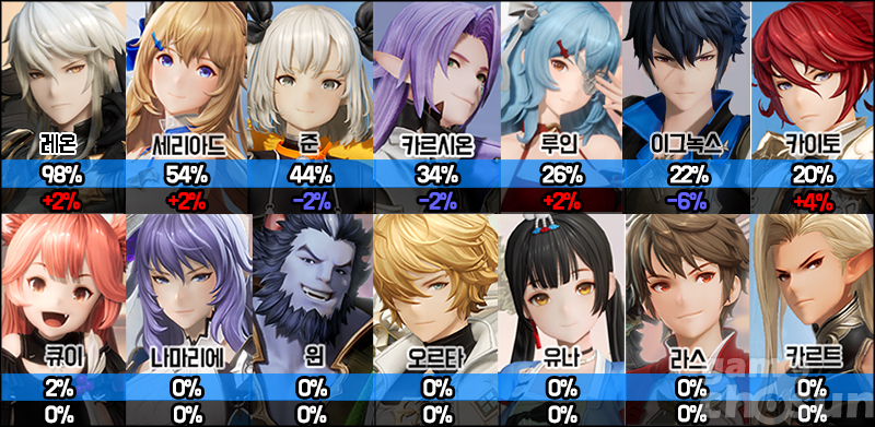 ■ 레온 또다시 랭커 선택률 98% 기록, 루인과 이그녹스 자리 교체