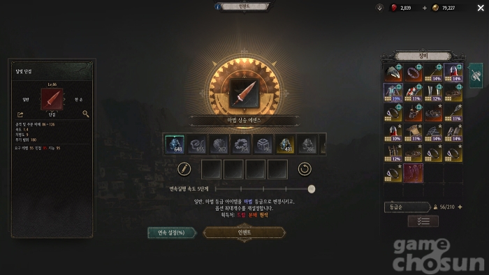장비를 너무 자주 바꾸지만 않는다면 충분히 장비 교체 속도를 따라올 수 있는 양이 모이니 마법 상승 에센스를 사용하기 전 먼저 사용해 장비 퀄리티를 조절하고 인챈트 작업을 시작하면 된다.