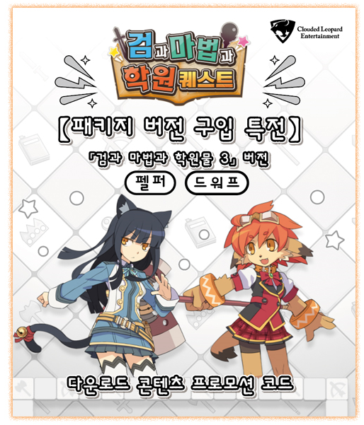 PlayStation®4, Nintendo Switch™ 『검과 마법과 학원 퀘스트』 패키지 제품의 구입 특전은 다음과 같다.