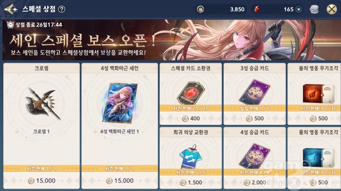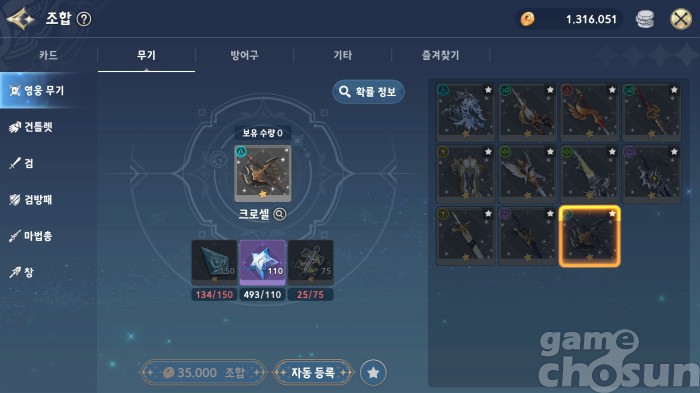 영웅 무기 크로셀은 조합으로도 획득할 수 있으니 주화 구매는 후순위로 책정하자 = 게임조선 촬영
