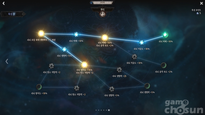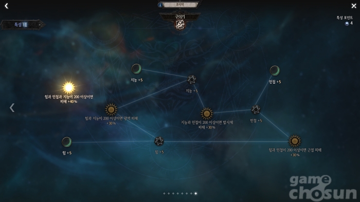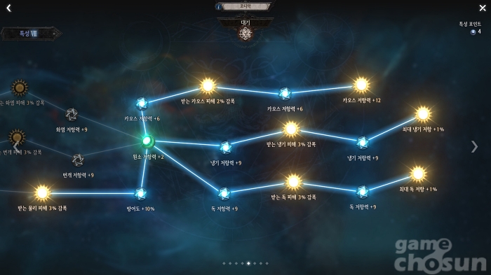 3단계는 어느 것을 찍어도 상관없다. 모든 계열이 동일한 구성으로 배치되어 있다. 배치되어 있는 주요 조디악 4개를 투자하기 위한 최적 포인트는 9개로 그에 맞춰 활성화해주면 된다.