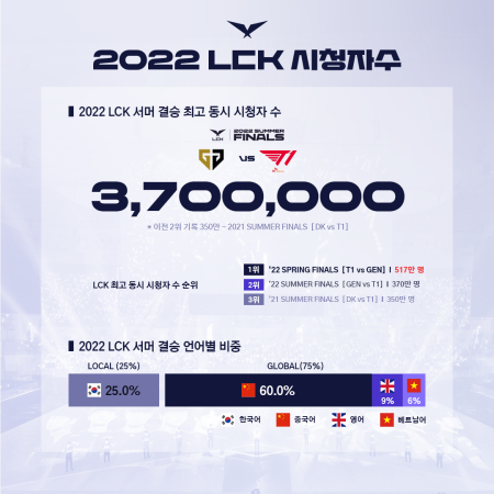 ■ 2022 LCK 서머 결승, LCK 역대 2위의 최고동시시청자수 달성