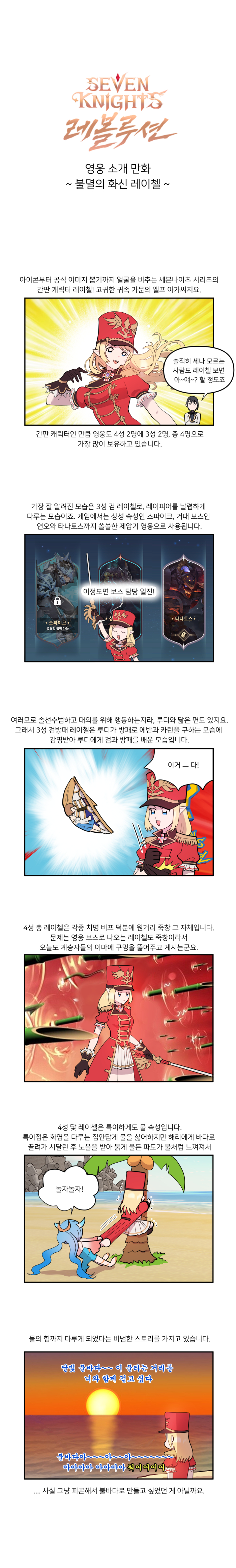 넷마블이 서비스하는 MMORPG '세븐나이츠 레볼루션'의 웹툰 '세나 레볼루션 영웅 소개 만화' 8편 '불멸의 화신 레이첼'이 공개됐다.