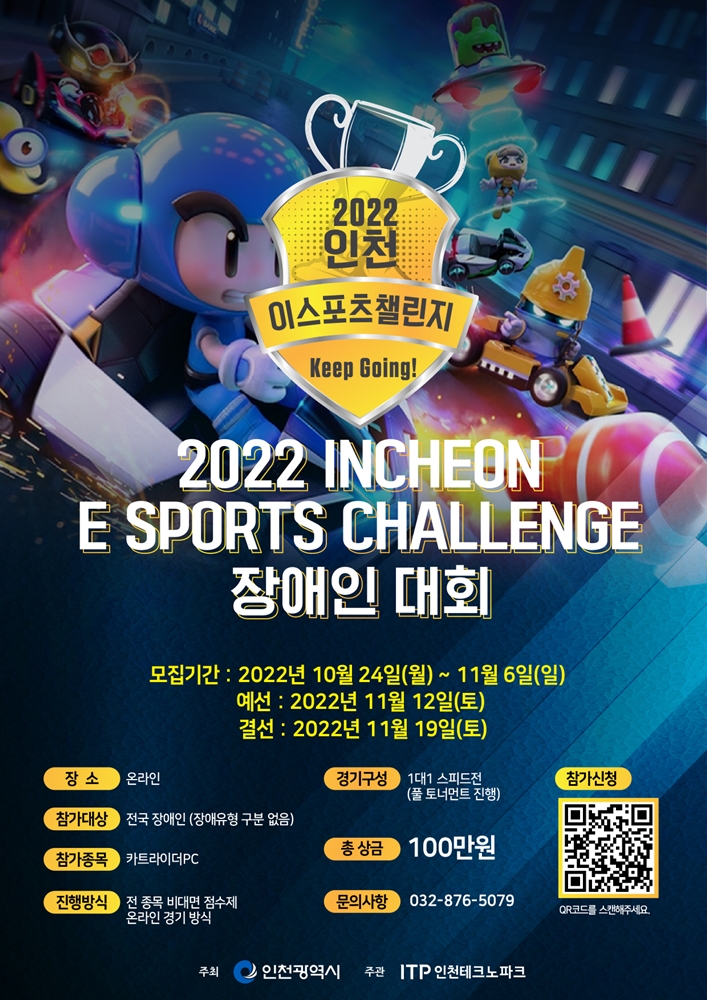 [자료제공 = 위드피알] 인천광역시(시장 유정복)가 주최하고 인천테크노파크(원장 서병조)에서 주관하는 ‘2022 인천 e스포츠 챌린지 ‘장애인 대회’의 참가자 모집이 금일(24일) 시작됐다.