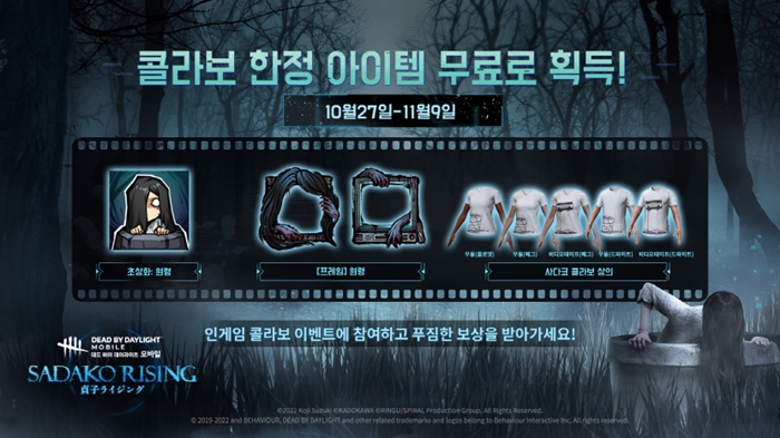 이번 콜라보의 일환으로 살인마 ‘사다코 야마무라’와 생존자 ‘요이치 아사카와’가 합류했으며, 일본을 비롯해 전 세계로부터 높은 인지도를 갖고 있는 이들을 통해 새로운 접근 방식의 게임 플레이를 즐길 수 있다.