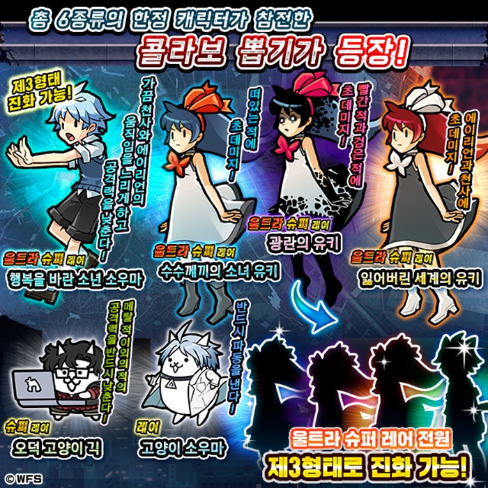 울트라 슈퍼 레어 캐릭터 ‘행복을 바란 소년 소우마’에 제3형태가 추가되었으며, 그 외 콜라보 한정 울트라 슈퍼 레어 캐릭터들도 전원 제3형태로 진화 가능하다.