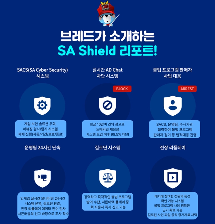 한편, 넥슨은 ‘서든어택’이 불법 프로그램 근절을 위해 들이는 다양한 활동을 알리고 이용자들의 보안 인식을 강화하는 일환으로 11월 10일까지 ‘서든 쉴드 캠페인’을 진행한다. 매일 게임 내에 등장하는 퀴즈 정답을 맞히거나 이벤트 페이지에서 응원의 댓글을 남기는 등 다양한 이벤트를 통해 ‘넥슨캐시’와 더불어 게임 아이템을 선물한다.