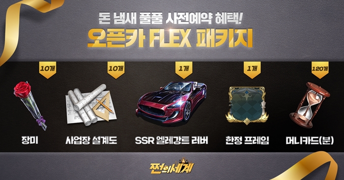 사전등록에 참여하면 인게임에서 바로 사용할 수 있는 SSR 컬렉션 ‘엘레강트 러버’, 한정 프레임 ‘상상 그 이상’ 등 아이템이 담긴 ‘오픈카 FLEX’ 패키지를 받을 수 있다.