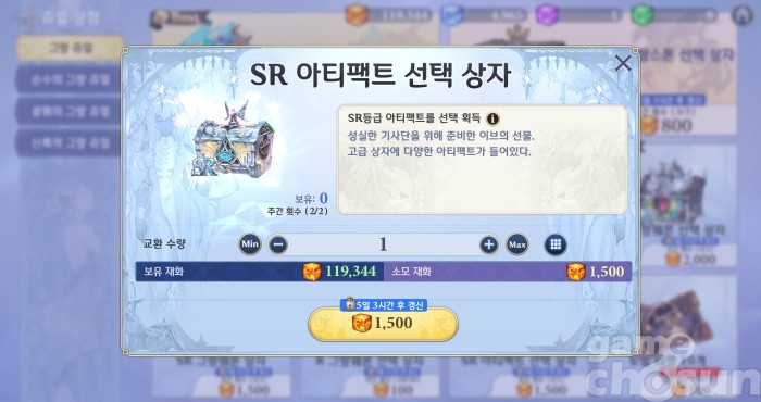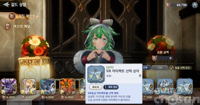SR 아티팩트를 구매한다면 가급적 선택 상자로 원하는 아티팩트를 받아 포인트를 아끼자 = 게임조선 촬영