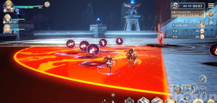 범위 고정 후 다시 범위 표시되면서 착지 공격, 안전지대로 피난 가능