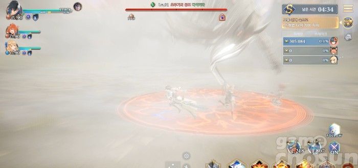 안개 생성 후 캐릭터 위치에 다운 공격 4번, 이후 처음 패턴으로