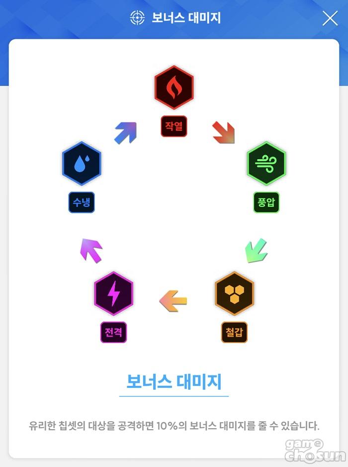위에서 소개한 3개의 조건 외에도 추가적으로 '코드'라 불리는 속성 간 상성까지 고려한다면 최고의 시너지를 낼 수 있다.