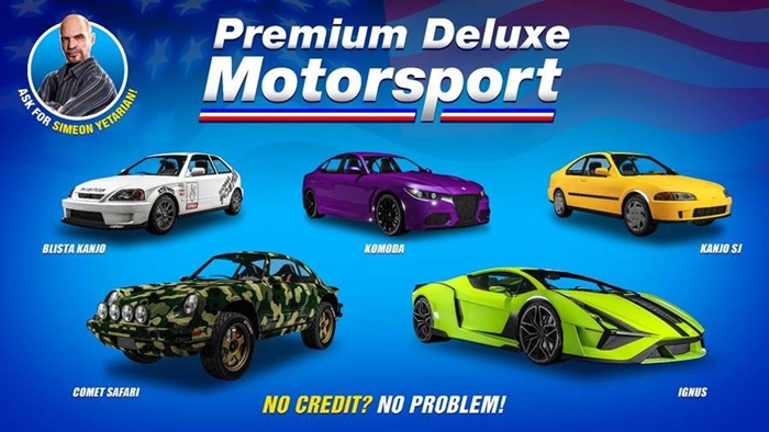 프리미엄 디럭스 모터스포츠 전시장에서는 클래식 옐로우 딩카 칸조 SJ를 비롯해 다크 그린 도색과 애리드 씨어터 상징을 갖춘 피스터 코메트 사파리 등을 판매한다.