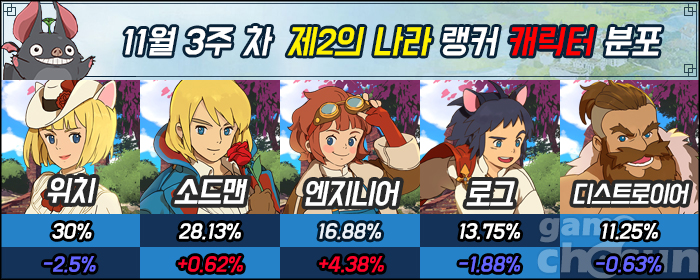 제2의 나라 11월 3주 차 랭킹 1위는 이그니스 서버 위치 'DAWIS'가 차지했다.