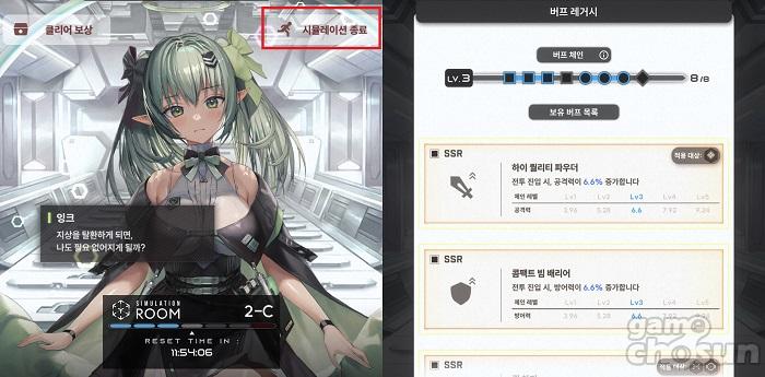 이때는 이전 섹터 공략을 통해 '버프 레거시' 효과를 활용하면 된다. 각 섹터를 완료할 때마다 무작위의 SSR 등급 버프 중 1종을 선택할 수 있으며, 버프 레거시에 등록된 버프는 다음 시뮬레이션 시작 시 보유한 상태로 진행되므로 스쿼드의 전투력을 높여서 참여 가능하다.