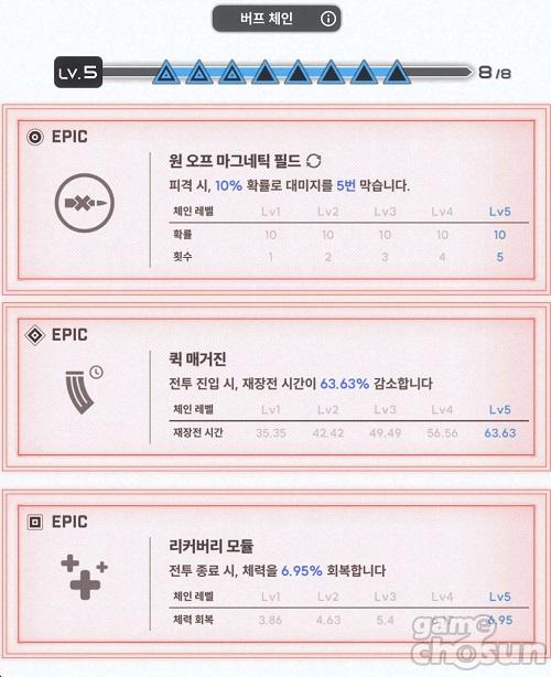 | 동일한 버프 타입 8개 | 버프 Lv.5 적용 | ◇ / ◇ / ◇ / ◇ / ◇ / ◇ / ◇ / ◇ |