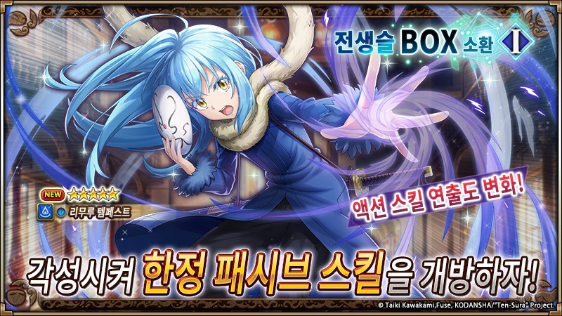 [리무루 템페스트], [베니마루], [슈나], [밀림 나바], [란가&리무루(슬라임)] 등이 콜라보 영웅으로 [발키리 커넥트]에 처음으로 등장합니다.
