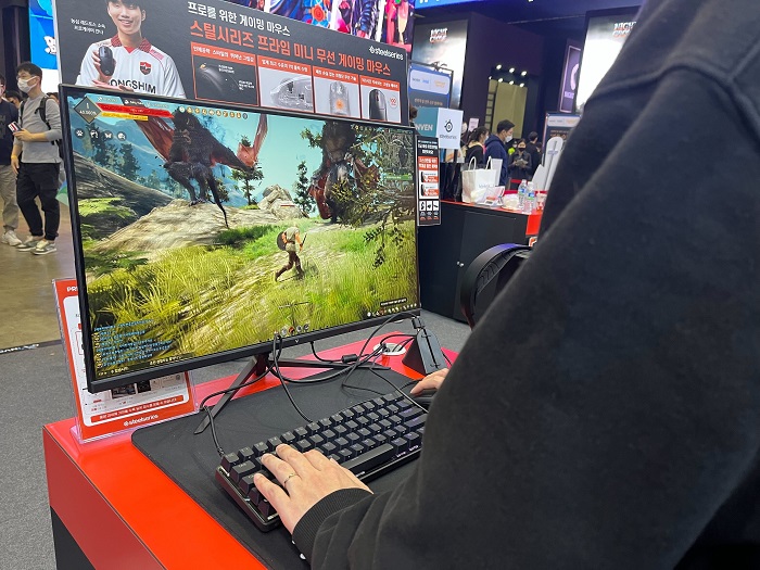 [자료제공=펄어비스] 펄어비스(대표 허진영)는 삼성전자와 스틸시리즈 부스를 통해 자사의 검은사막 IP 시연을 2022 지스타에 선보였다.