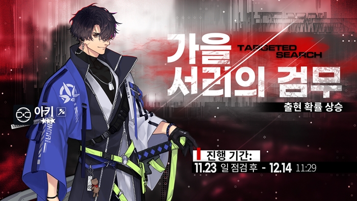 정식 오픈과 함께 시작되는 서버 오픈 이벤트들도 발표했다. 먼저 11월 23일부터 11월 30일까지 진행되는 ‘특수 채널 검색’ 이벤트에서는 딱 1번, 10회 검색을 통해 최소 1기의 3성 인형을 획득할 수 있다. 그리고 CBT 때도 유저들에게 큰 인기를 끌었던 3성 인형 ‘허블’의 출현 확률이 대폭 상승하는 픽업 이벤트 ‘밤하늘의 별빛’과 함께, 몇 없는 남성 인형 ’아키’를 높은 확률로 획득할 수 있는 ‘가을 서리의 검무’ 픽업 이벤트도 11월 23일부터 12월 14일까지 진행될 예정이라고 전했다.