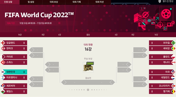 월드컵 진출국들로 즐기는 짜릿한 토너먼트 FIFA 월드컵 2022™ 모드