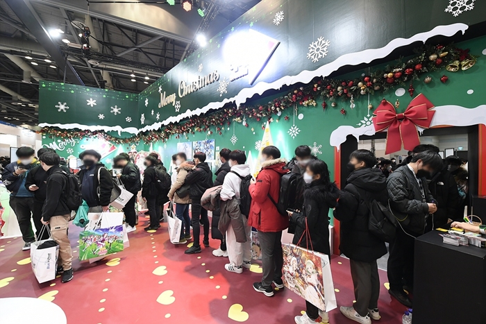 ‘에버소울’ 부스에서는 ‘에버소울’의 웹툰 OST를 듣고 가사를 맞추는 ‘OST 가사 맞추기 이벤트’, 소원을 입력하면 기프티콘을 발송하는 ‘크리스마스 트리 소원 빌기 이벤트’ 등 이용자가 직접 참여하며 즐길 수 있는 다채로운 이벤트가 진행됐다. 특히, 게임 속 정령 ‘탈리아’의 모습을 담은 ‘탈리아 무드등’과 정령의 얼굴이 담긴 ‘이모티콘 막대사탕 박스’ 등 특별한 굿즈가 주목을 받았다.