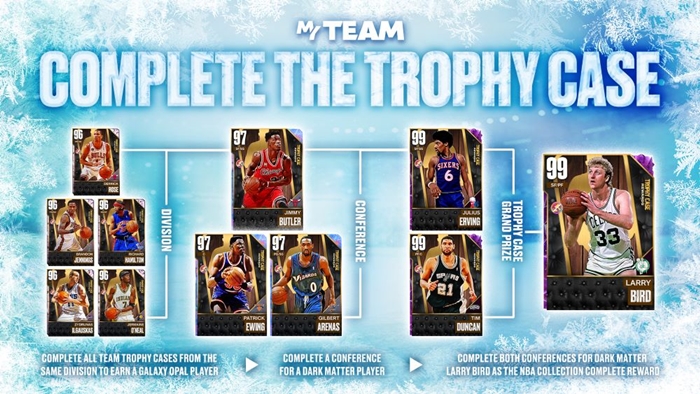 또한 동부 또는 서부 컨퍼런스 트로피 케이스 전체를 모았다면 팀 던컨과 줄리우스 어빙이 주어지며, 이번 시즌에 15개의 센터피스 및 희귀 트로피 케이스 이벤트 카드도 추가된다.