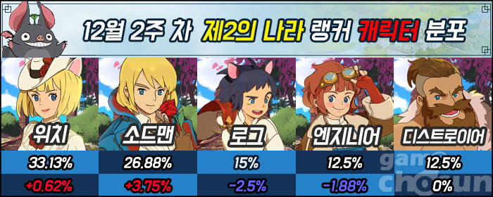 지난 랭킹에서 점유율 3,75% 하락을 보여주었던 소드맨이 이번 주엔 똑같은 수치의 점유율을 회복하면서 원래 자리로 돌아왔다. 반면 지난 랭킹에서 극적인 상승을 보여준 로그와 엔지니어는 상승했던 만큼 소드맨에게 반납했다. 위치는 랭커 1명 수준의 미세한 변화로 그쳤으며, 디스트로이어는 움직임 없이 엔지니어와 동률을 이루었다.