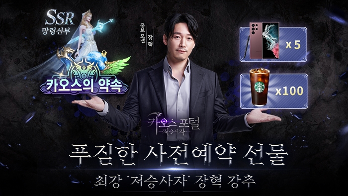 현재 사전예약 진행 중이며 공식 사이트를 통해 참여하면 한정판 칭호 ‘카오스의 약속’ 쿠폰코드를 획득할 수 있을 뿐만 아니라 관련 버튼을 통해 앱마켓 사전예약에 참여하면 한정판 SSR전령 ‘망령신부’ 쿠폰코드를 100% 받을 수 있다. 출시후 2가지의 쿠폰코드를 모두 사용한 유저들은 추첨을 통해 갤럭시 S22 울트라 등 특별대상도 증정될 예정이다. 이외에도 공식 라운지 이벤트 참여자는 인게임 보상 외에 10만원 상품권, 커피 교환권을 획득할 수 있는 기회를 얻을 수 있다.