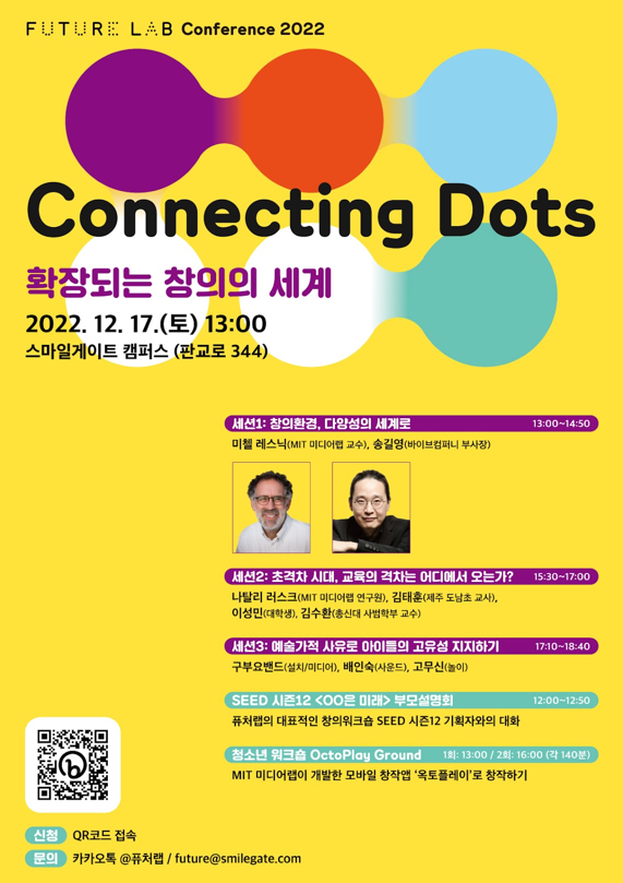[자료제공 = 스마일게이트] 스마일게이트 퓨처랩은 오는 17일(토) 경기도 분당구 스마일게이트 캠퍼스에서 ‘커넥팅 닷(Connecting Dots) : 확장되는 창의의 세계’ 컨퍼런스를 개최한다고 13일 (화) 밝혔다.