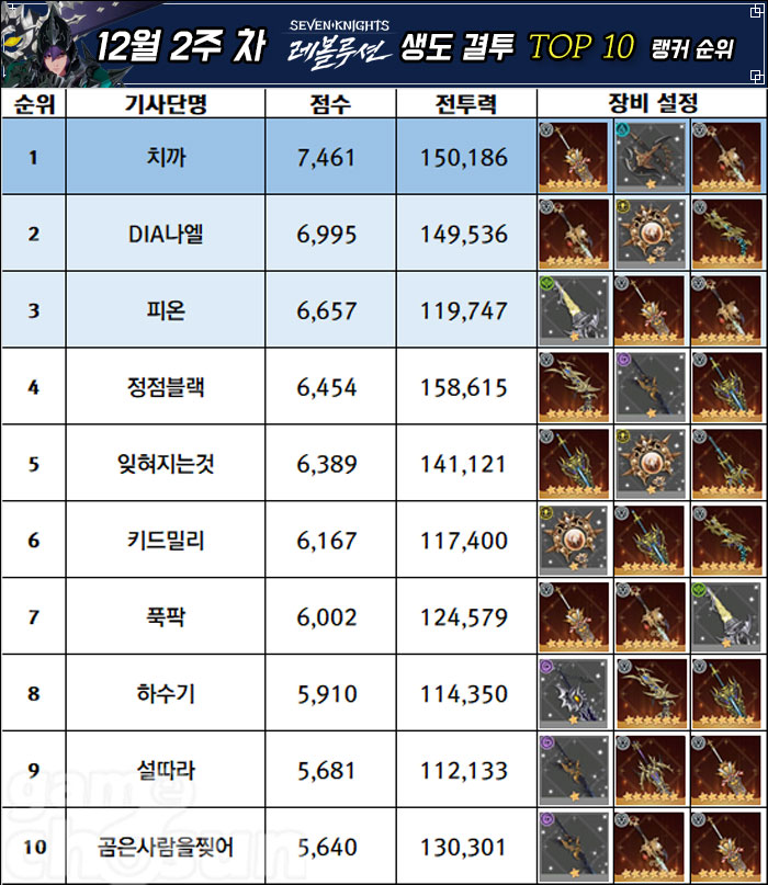 ■ '치까' 유저 2주 연속 생도 결투 1위, 다시금 태오 검 인기?