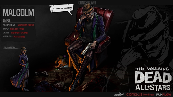 ‘워킹데드: 올스타즈’는 컴투스홀딩스와 펀플로(대표 손경현)의 시너지가 돋보이는 수집형 RPG다. 스카이바운드 엔터테인먼트의 ‘워킹데드’ 오리지널 코믹스 IP를 기반으로 한 이 게임은 특유의 포스트 아포칼립스 분위기를 생동감 넘치는 그래픽으로 구현했다. 인기 원작 캐릭터들뿐만 아니라 자체 개발한 창작 캐릭터들도 등장해 세계관을 대폭 확장했다.