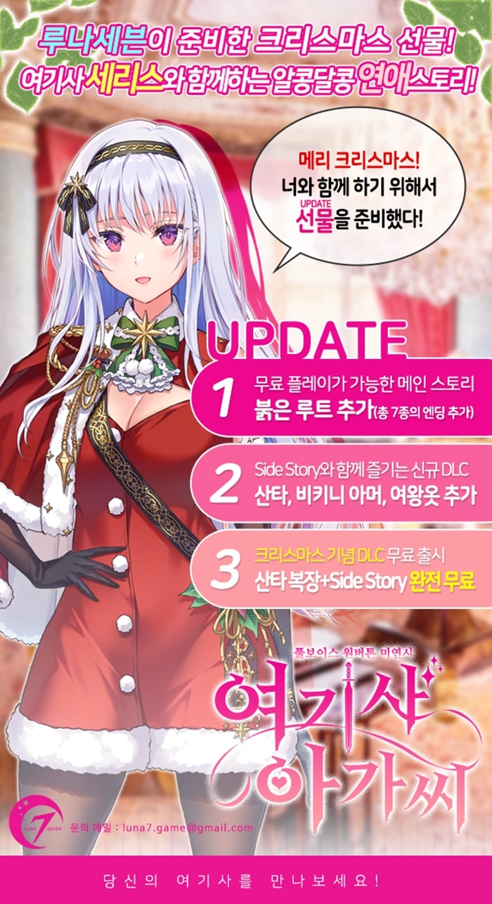 [자료제공 = 루나세븐] 인디게임 팀 ‘루나세븐’의 <여기사 아가씨>가  대규모 신규 컨텐츠 업데이트 및 크리스마스 기념DLC 무료 출시를 하였다.