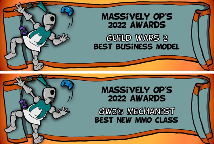 추가로 ‘Massively Overpowered’는 길드워2를 2년 연속으로 ‘Best MMO Business Model(최고의 MMO 비즈니스 모델)’로 선정했다. 길드워2 ‘엔드오브드래곤즈’에서 선보인 신규 클래스 ‘Mechanist(메카니스트)’가 ‘Best New MMO Class(최고의 신규 MMO 클래스)’로 꼽히기도 했다.
