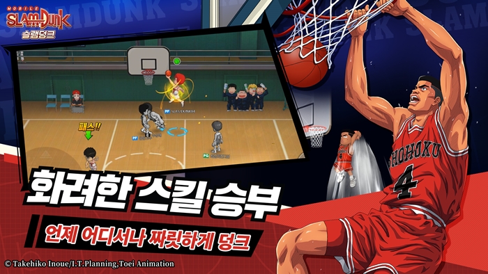 ‘슬램덩크’는 90년대 선풍적인 인기를 끌었던 이노우에 다케히코의 만화/애니메이션 IP를 기반으로 제작한 게임으로, 원작의 인기 캐릭터 특징을 반영한 스킬과 간단한 조작만으로 생동감 넘치는 플레이를 즐길 수 있는 것이 특징이다.