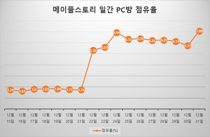 ▲ ’메이플스토리’ PC방 점유율 상승 그래프