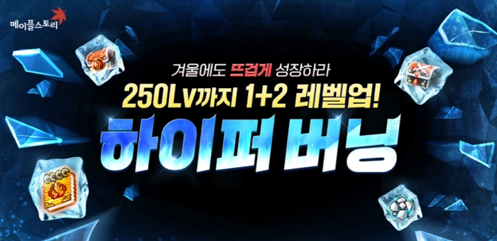 이어 12월 22일 1차 업데이트로 초고속 성장을 지원하는 하이퍼 버닝을 실시했다. 하이퍼 버닝은 250레벨까지 1레벨 오를 때마다 2레벨이 추가 성장하는 파격적인 성장 이벤트다. 여러 캐릭터를 키우는 기존 이용자는 물론 새롭게 진입하는 신규 이용자와 오랫동안 게임에 접속하지 않았던 복귀 이용자들에게 지속적인 플레이 동기를 제공하며 큰 호응을 얻고 있다. 하이퍼 버닝 캐릭터는 레벨 달성 시 ‘Infinite Flame’, ‘Eternal Flame’ 등 칭호 교환권과 ‘경험의 코어 젬스톤’, 지역별 5레벨 ‘아케인 심볼’ 등 성장을 돕는 각종 보상이 제공되며, 버닝 월드에서 육성할 시 기존보다 더욱 풍성한 보상이 지급된다.