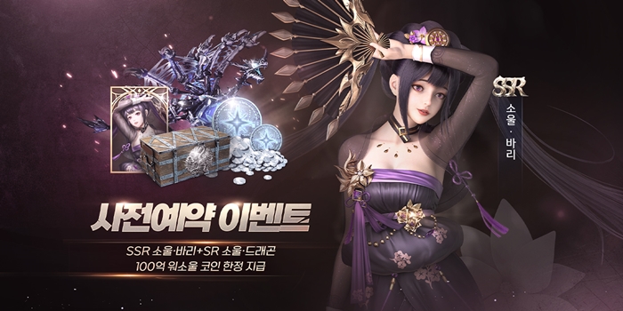 금일 사전예약을 시작한 ‘이모탈 소울’은 이용자 전원에게 한국 이용자만을 위해 특별하게 제작된 한국신화의 바리 공주 SSR 소울 ‘바리’를 지급하며, 라운지 가입 시 SR 소울 ‘폭풍 백호’를, 스토어 사전예약 시 SR 소울 ‘드래곤’과 100억 워소울코인을 제공한다.
