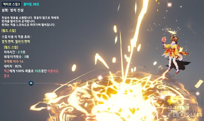 나람의 액티브 스킬 중 가장 눈여겨볼만한 기술은 3번 액티브 스킬이라 할 수 있다. 적을 따라가는 번개를 소환해 최대 5회 타격하는데, 적중이 쉽고 이동 속도 저하 디버프까지 부여한다. 타격 시 마다 이동 속도 저하 5%가 적용되므로, 적의 이동 속도를 최대 25%까지 줄일 수 있다.