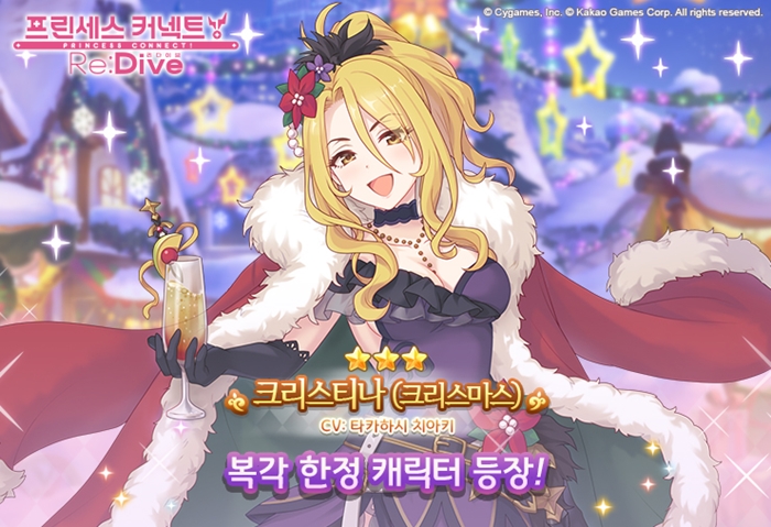 복각 한정 캐릭터로 재등장하는 ‘크리스티나(크리스마스)’는 전열에서 전투를 즐기는 크리스마스의 ‘서약여군’이다. 유니온 버스트(필살기) 사용 시 획득하는 코인의 유무에 따라 지원형과 공격형으로 변환해 전투에 임할 수 있다. 코인이 없을 경우, 유니언 버스트인 ‘듀얼리티 아발론’으로 전방의 적 하나에게 큰 물리 대미지를 주고, 자신의 물리 공격력이 증가하면서 코인을 획득할 수 있다. 코인이 있다면 해당 코인을 소모해 무조건 명중하는 특대 대미지를 입힌다.