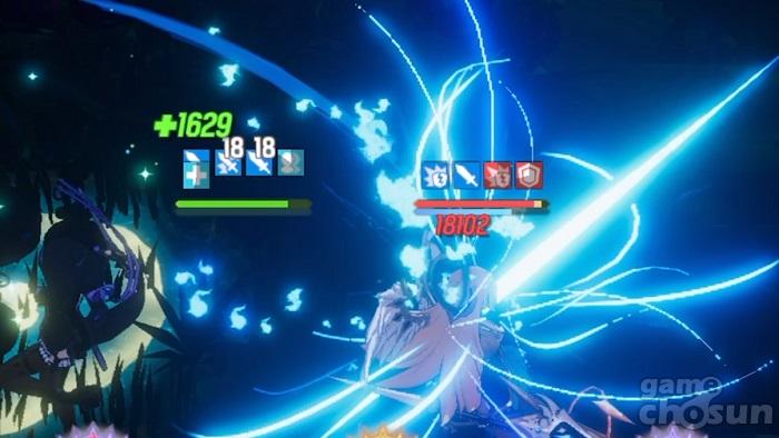 무아지경 18중첩을 쌓은 린지, 아드리안의 광휘의 고리를 사전 차단할 수 있다. = 게임조선 촬영