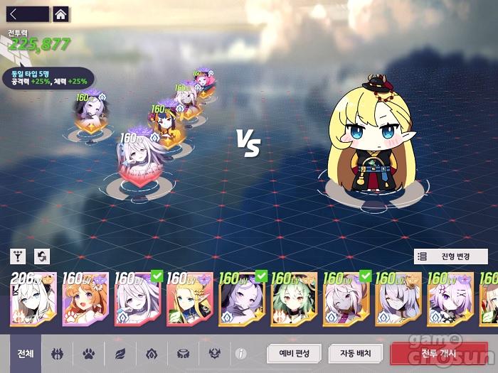 비올레트는 전투 시작과 동시에 사거리로 인해 프림의 좌측으로 이동한다. 레베카와 가장 멀어지게 된 것 = 게임조선 촬영