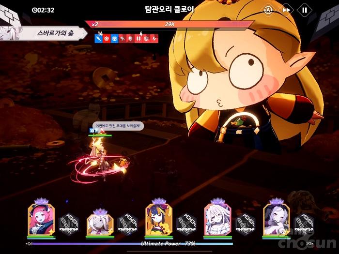 탐관오리 클로이가 이 표정을 지을 때가 딜타임이다. 약 30초 주기로 돌아온다. = 게임조선 촬영