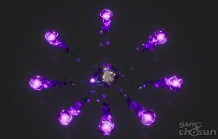 8방향으로 발사되는 액티브 스킬 '철저한 준비'