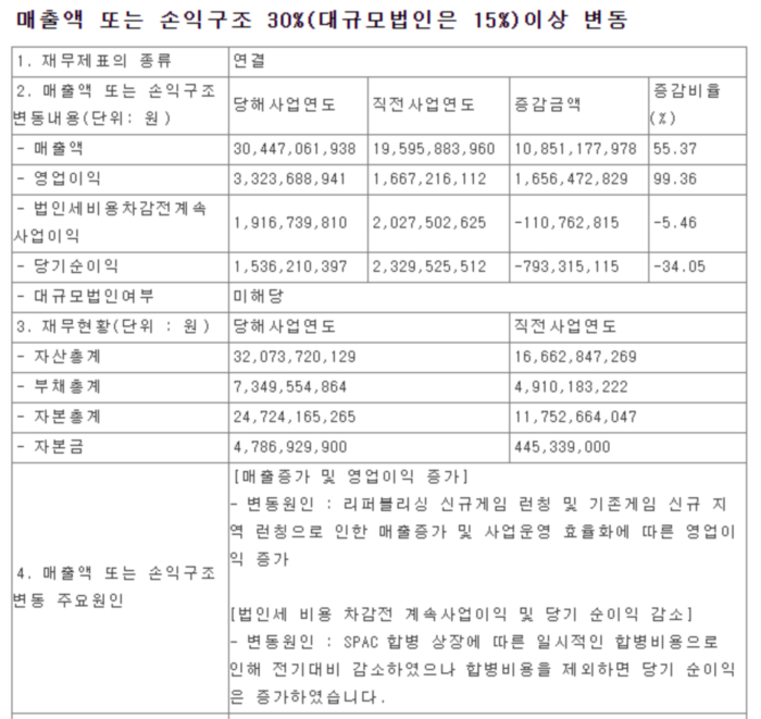 공시 상으로는 당기순 이익은 전년대비 감소하였지만 일시적인 합병비용이 반영된 것으로 이는 “현금유출이 없는 회계상 비용이기 때문에 재무구조는 더욱 견실해 졌으며 해당비용(합병비용)이 반영되지 않았다면 당기순이익 또한 창립이래 역대 최대를 달성하였을 것”을 추가로 설명하였다.