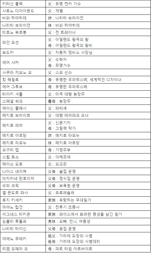 팬덤에서 정리한 게임 내의 가족관계를 보면 인간과 우마무스메가 연애하고 후손을 낳는 것에는 전혀 문제가 없는 것으로 확인되고 있습니다