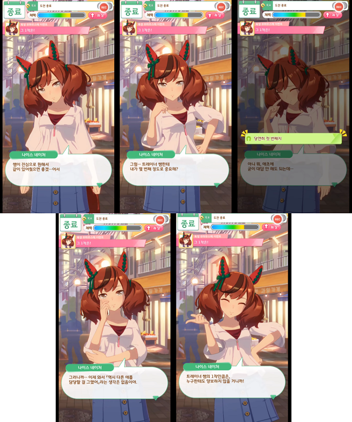 그래서 우마무스메:프리티 더비는 게이머들의 생각 이상으로 몹시 소년만화스러운 성장물이라서 아수라장 전개를 원하는 분들한테는 아쉬운 일이겠지만, 트레이너(플레이어)와의 상호 호감도가 사제 이상으로 진전된다는 묘사가 비교적 분명한 '나이스 네이처'를 제외하면 게임 내의 서사 면에서 정실 논란은 거의 없다고 봐도 무방합니다. 아 물론 개인의 취향이나 애니메이션의 내용 등으로 정실 논쟁이 생긴다면 답이 없지만 말이죠.